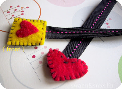 this handsewn bookmark :: ~15" long from both ends ~12" polyester ribbon with pink running stitch in the middle length ~felt heart is 1.5" wide and 1.25" long from bottom tip to peak ~felt flower with red button on rectangular red and pink felt, sewn back to back and measures 1.2" wide and 1.5" long